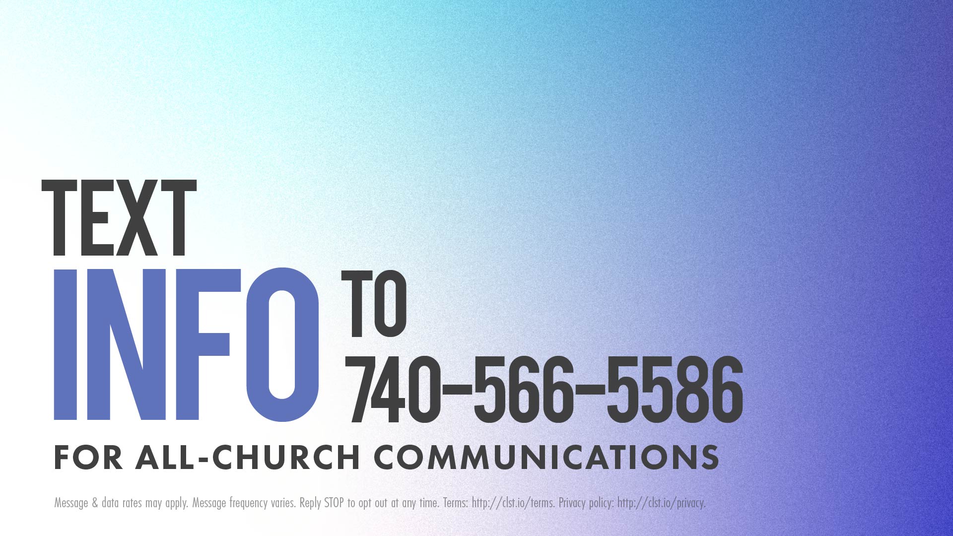 Text INFO to 740-566-5586 to subscribe to general information text updates from Brookfield Church, including inclement weather updates. Message & data rates may apply. Message frequency varies. Reply STOP to opt out at any time. Terms: http://clst.io/terms. Privacy policy: http://clst.io/privacy.
