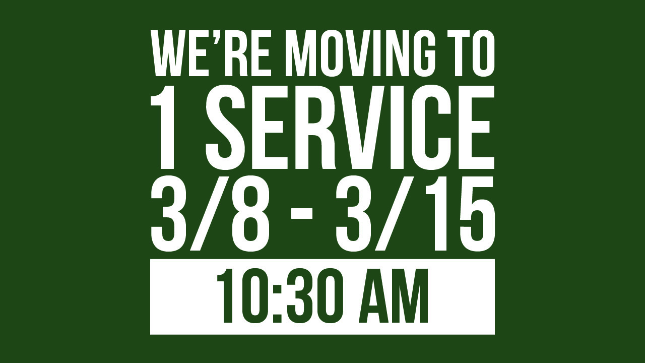 While students are away for spring break on March 8th and 15th, we'll have one Sunday service at 10:30 AM. We will resume our two-service schedule on Sunday, March 22nd.